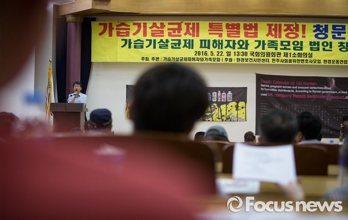 (서울=포커스뉴스) 가습기살균제 피해자와 가족모임(가피모)이 22일 오후 서울 영등포구 국회의원회관에서 '2016 가습기살균제피해자 및 가족모임 법인창립총회'를 하고 있다.