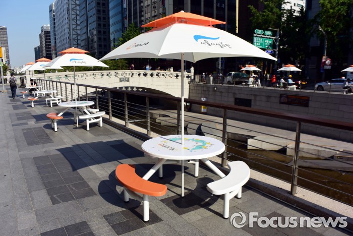 (서울=포커스뉴스) 서울시설공단은 시민들의 편의를 위해 청계천가에 파라솔의자를 설치해 22일부터 운영한다.