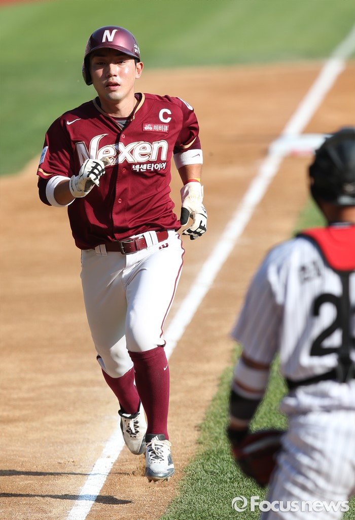 (서울=포커스뉴스) 22일 서울 잠실구장에서 열린 2016 프로야구 넥센-LG 경기 1회초 1사 3루에서 넥센 채태인의 중견수 희생플라이때 3루주자 서건창이 홈인하고 있다.