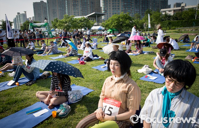 (서울=포커스뉴스) 나흘째 이어지던 폭염이 마지막 기승을 부린 22일 오후 서울 용산구 이촌 한강공원에서 '한강 멍때리기 대회'가 열렸다. 뙤약볕도 아랑곳 않고 최선을 다해 멍을 때린 참가자들의 표정엔 깨달음 마저 보인다. 그 깨달음 속으로 함께 들어가 본다.(서울=포커스뉴스) 22일 오후 서울 용산구 이촌 한강공원에서 열린 '한강 멍때리기 대회'에서 참가자들이 멍하게 앉아 있다. 2016.05.22 양지웅 기자