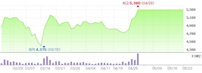 아이오케이의 액면분할 주권 변경상장으로 인한 거래 정지는 오는 25일 해제된다.아이오케이 주가 추이 <그래픽출처=네이버>