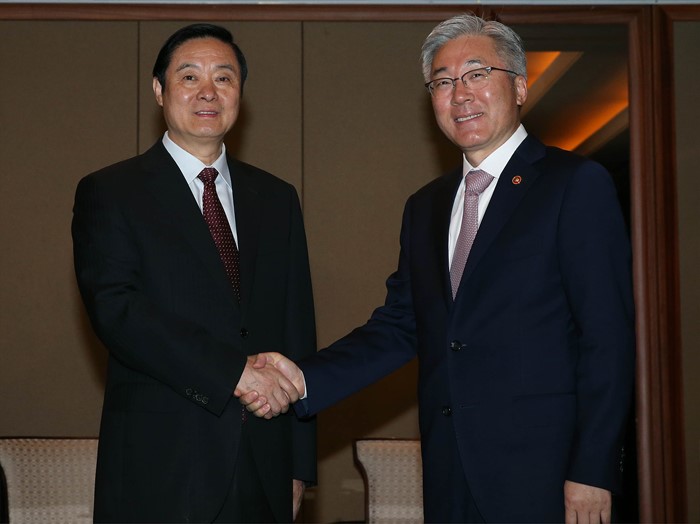 (서울=포커스뉴스) 김종덕(오른쪽) 문화체육관광부 장관이 23일 서울 중구 롯데호텔에서 문화체육관광부와 중국 국무원신문판공실이 주최하고 21세기 한중교류협회가 주관하는‘제8차 한중 고위언론인 포럼’에 참석해, 류치바오 중국공산당 중앙 선전부장과 인사를 나누고 있다. <사진제공=문화체육관광부>