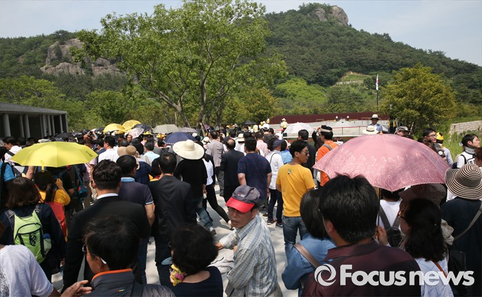 (김해=포커스뉴스) 23일 오후 경남 김해 봉하마을에서 엄수된 故 노무현 전 대통령 서거 7주기 추도식에 추도객들이 입장하고 있다.