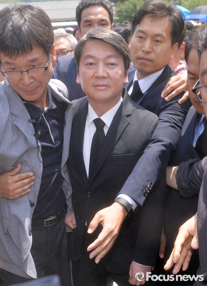(김해=포커스뉴스) 23일 오후 경남 김해 봉하마을에서 엄수된 故 노무현 전 대통령 서거 7주기 추도식에 안철수 국민의당 상임공동대표가 참석하고 있다.