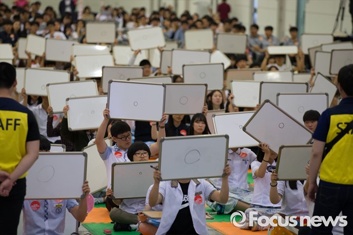 (세종=포커스뉴스) 23일 오후 세종시 정부세종컨벤션센터에서 민주평화통일자문회의 주최로 열린 2016 민주평통 통일골든벨 세종·충남대회에 참가한 학생들이 문제를 풀고 있다.