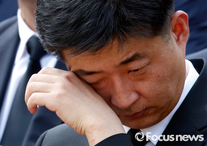 (김해=포커스뉴스) 23일 오후 경남 김해 봉하마을에서 엄수된 故 노무현 전 대통령 서거 7주기 추도식에 참석한 노 전 대통령의 장남 건호 씨가 눈물을 흘리고 있다.