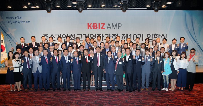 (서울=포커스뉴스) 주형환 산업통상자원부 장관이 23일 서울 여의도 중소기업중앙회 그랜드홀에서 중소기업 최고경영자 과정(K-BIZ AMP) 입학식에 참석해 기념촬영 하고 있다. <사진제공=산업통상자원부>
