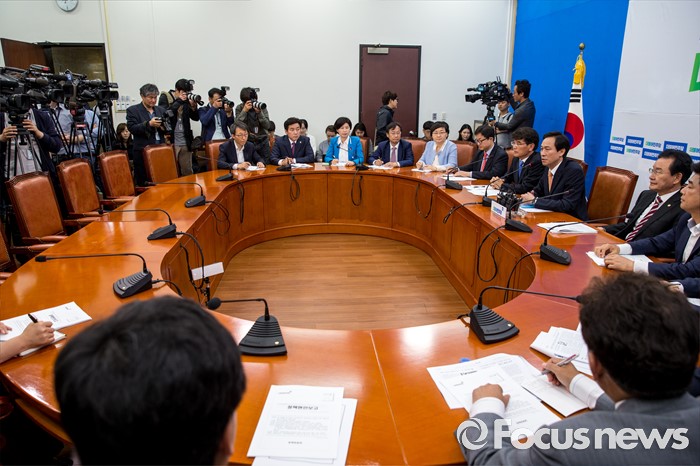 (서울=포커스뉴스) 우상호 더불어민주당 원내대표가 24일 오전 서울 여의도 국회의서 열린 원내대책회의에 참석해 모두발언 하고 있다.