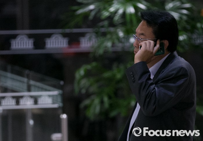 | △ 통화 중인 정진석 새누리당 원내대표 |