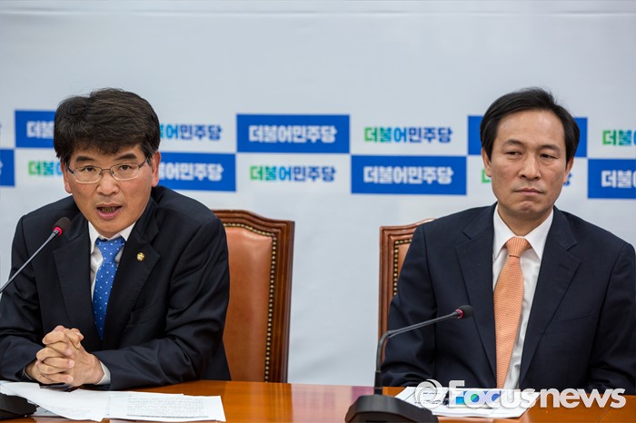 (서울=포커스뉴스) 박완주 더불어민주당 원내수석부대표가 24일 오전 서울 여의도 국회의서 열린 원내대책회의에 참석해 발언 하고 있다.