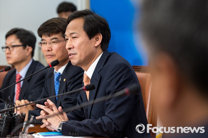 (서울=포커스뉴스) 우상호 더불어민주당 원내대표가 24일 오전 서울 여의도 국회의서 열린 원내대책회의에 참석해 모두발언 하고 있다.
