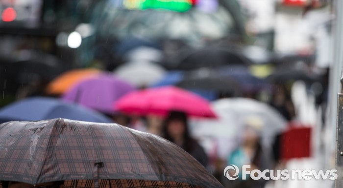 (서울=포커스뉴스) 전국이 흐리고 비가 내리는 24일 오전 서울 강남구 강남역 인근에서 시민들이 발걸음을 재촉하고 있다.