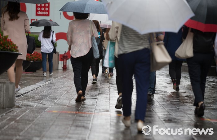 (서울=포커스뉴스) 전국이 흐리고 비가 내리는 24일 오전 서울 강남구 강남역 인근에서 시민들이 발걸음을 재촉하고 있다.