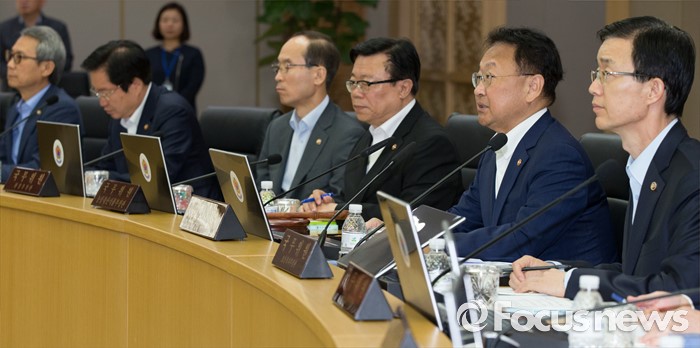 (세종=포커스뉴스) 유일호(오른쪽 두 번째) 경제부총리 겸 기획재정부장관이 24일 오전 세종시 정부세종청사 국무회의장에서 서울-세종 영상회의로 열린 국무회의를 주재하고 있다.