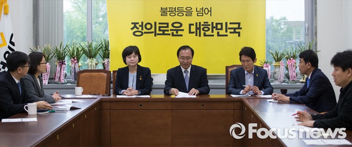 (서울=포커스뉴스) 노회찬(가운데) 정의당 원내대표가 참석한 가운데 24일 오전 서울 여의도 국회에서 당선자 총회가 열리고 있다. 왼쪽 두번째부터 추혜선 당선인, 이정미 당선인, 노 원내대표, 윤소하 당선인, 김종대 당선인.