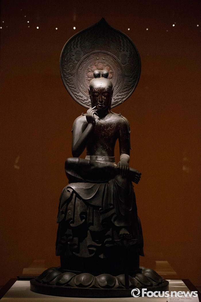 (서울=포커스뉴스) 24일 오전 서울 용산구 국립중앙박물관 기획전시실에서 열리고 있는 '한일국보 반가사유상의 만남' 전시에 일본의 국보 나라현 주구사 목조반가사유상이 전시돼있다.