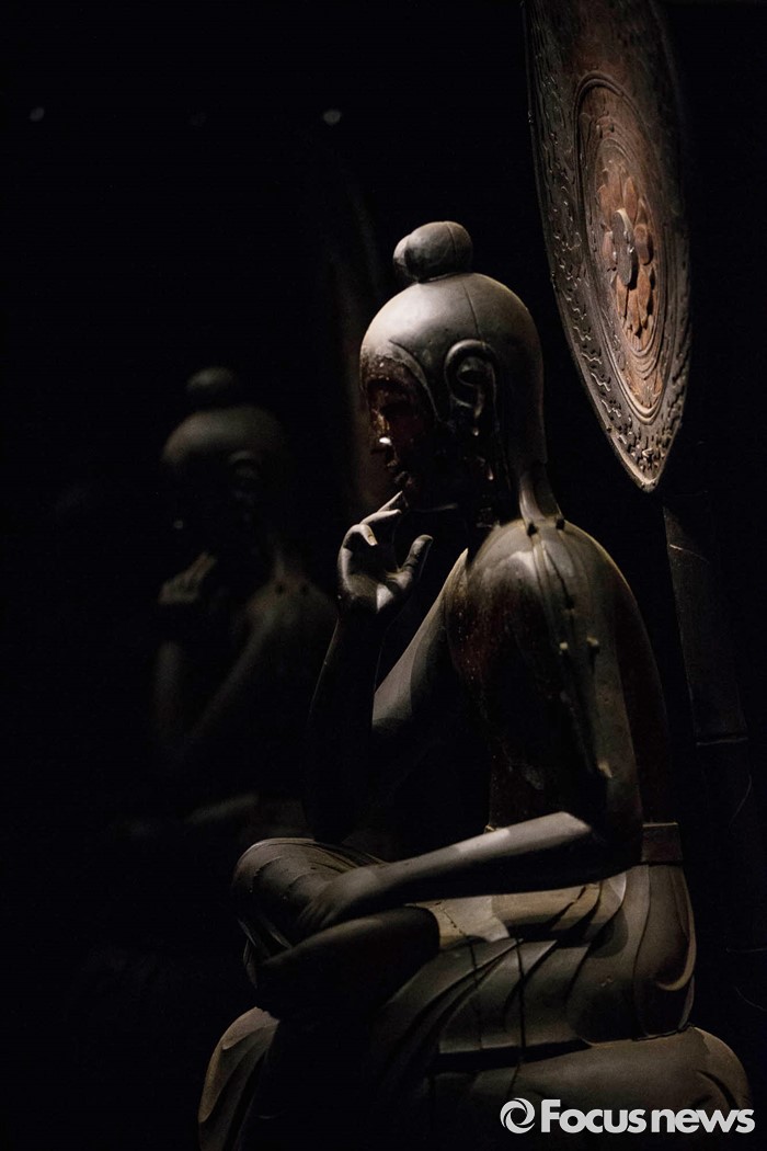 (서울=포커스뉴스) 24일 오전 서울 용산구 국립중앙박물관 기획전시실에서 열리고 있는 '한일국보 반가사유상의 만남' 전시에 일본의 국보 나라현 주구사 목조반가사유상이 전시돼있다.