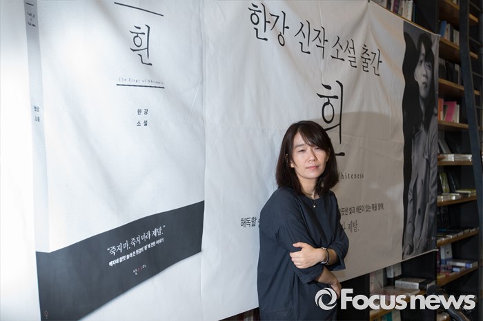 (서울=포커스뉴스) 소설' 채식주의자'로 세계 3대 문학상인 맨부커상을 수상한 한강이 24일 오전 서울 마포구 카페 꼼마에서 열린 신작소설 '흰' 출간 기자간담회에서 포즈를 취하고 있다.