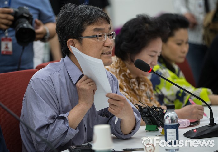 (서울=포커스뉴스) 가습기 살균제 피해자 가족 모임 강찬호 대표가 24일 오전 서울 여의도 국회 새누리당 원내대표실에서 열린 가습기살균제 피해자와 가족 모임 면담에서 가습기 살균제 피해 상황 설명을 하고 있다.