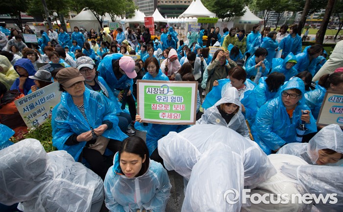 (서울=포커스뉴스) 24일 오전 서울 중구 서울시청 앞에서 열린 '서울시 발달장애인 부모 무기한 삭발결의 선포 기자회견'에 전국장애인부모연대 회원들이 참석하고 있다.