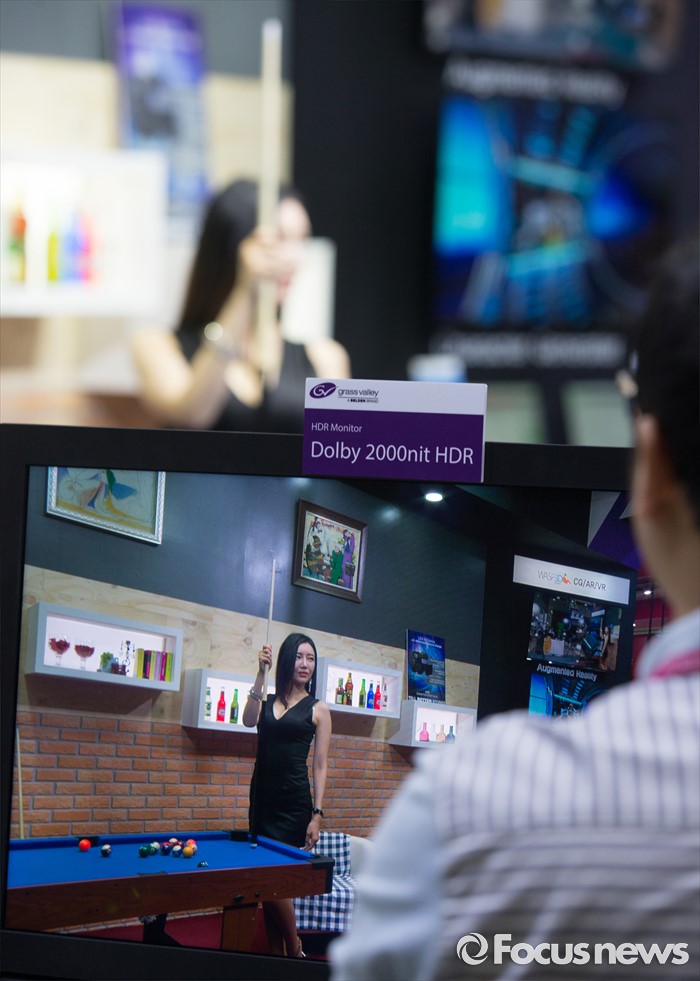 (서울=포커스뉴스) 24일 오전 서울 강남구 코엑스에서 열린 '제26회 국제 방송·음향·조명기기 전시회'의 한 부스에서 모델이 실시간 방송을 시연하고 있다.