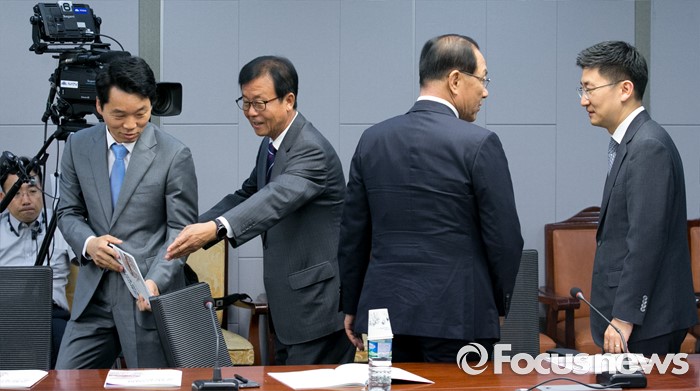 | △ 각각 인사하는 여야 |