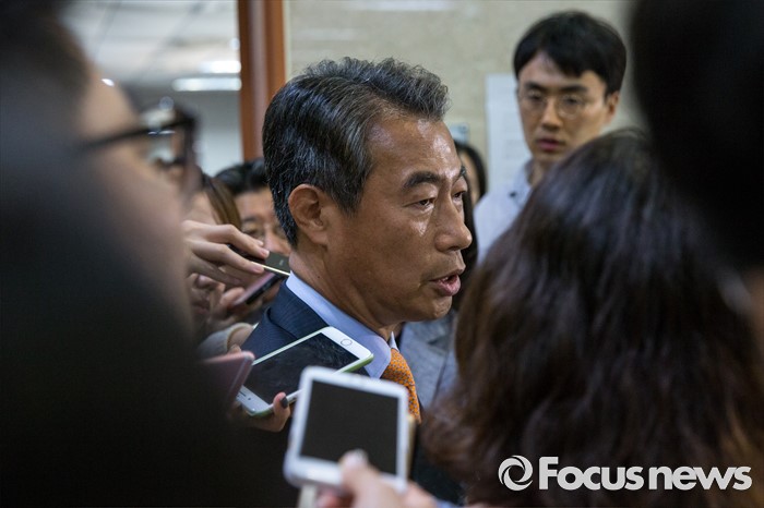 (서울=포커스뉴스) 정종섭 새누리당 당선자가 24일 오후 서울 여의도 국회에서 취재진에게 상시 청문회를 가능하도록 한 국회법 개정안이 행정부 침해 위헌소지가 있다는 설명을 하고 있다.