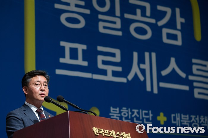 (서울=포커스뉴스) 천안함 피격사건을 계기로 5·24 대북제재 조치가 취해진 지 6년이 되는 날인 24일 오후 서울 중구 프레스센터에서 열린 '통일공감포럼 발족식 및 통일공감대화'에 참석한 홍용표 통일부 장관이 축사하고 있다.