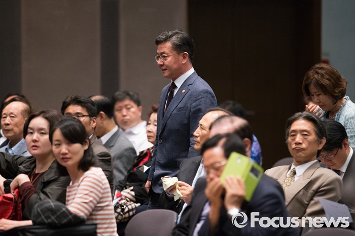 (서울=포커스뉴스) 천안함 피격사건을 계기로 5·24 대북제재 조치가 취해진 지 6년이 되는 날인 24일 오후 서울 중구 프레스센터에서 홍용표 통일부 장관이 '통일공감포럼 발족식 및 통일공감대화'에 참석하고 있다.
