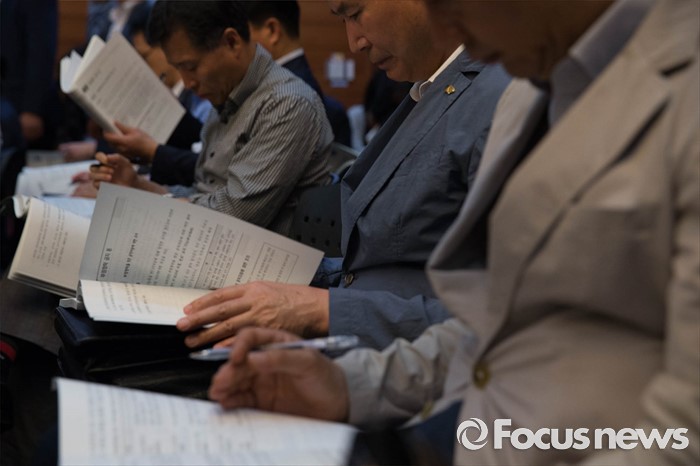 (서울=포커스뉴스) 24일 오후 서울 중구 포스트타워에서 열린 부정청탁 및 금품 등 수수 금지에 관한 법률(일명 김영란법) 입법예고안에 대한 공청회에 참석한 시민들이 안내책자를 보고 있다.