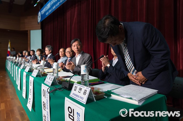 (서울=포커스뉴스) 24일 오후 서울 중구 포스트타워에서 열린 부정청탁 및 금품 등 수수 금지에 관한 법률(일명 김영란법) 입법예고안에 대한 공청회에 참석한 임연홍 한국화훼협회 부회장이 인사하고 있다.