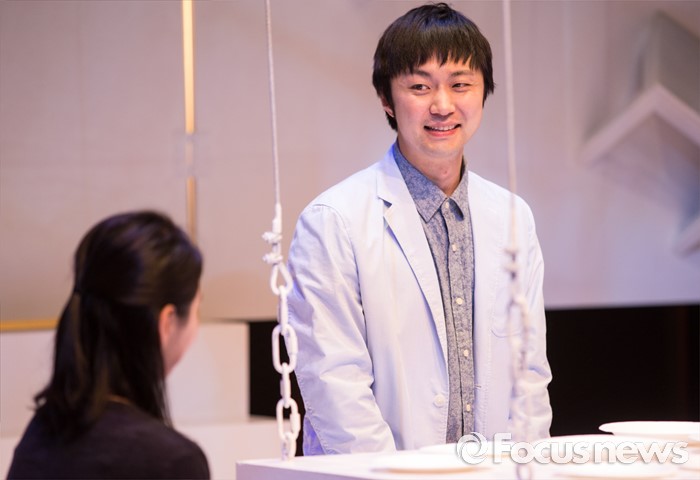 (서울=포커스뉴스) 24일 오후 서울 종로구 CJ아지트 대학로점에서 열린 연극 '크레센도 궁전' 프레스콜에 참여한 배우 권일이 주요장면을 시연하고 있다.