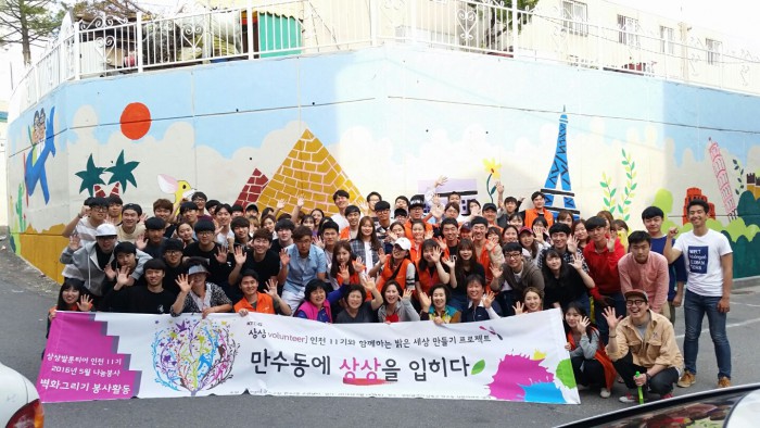 '상상을 입히다' 프로젝트는 노후 주택이 많은 도시 지역의 골목길 담장에 벽화를 그리거나 버려진 공터에 꽃밭을 조성하는 등 오래된 골목길 환경을 새롭게 개선하는 봉사활동이다.