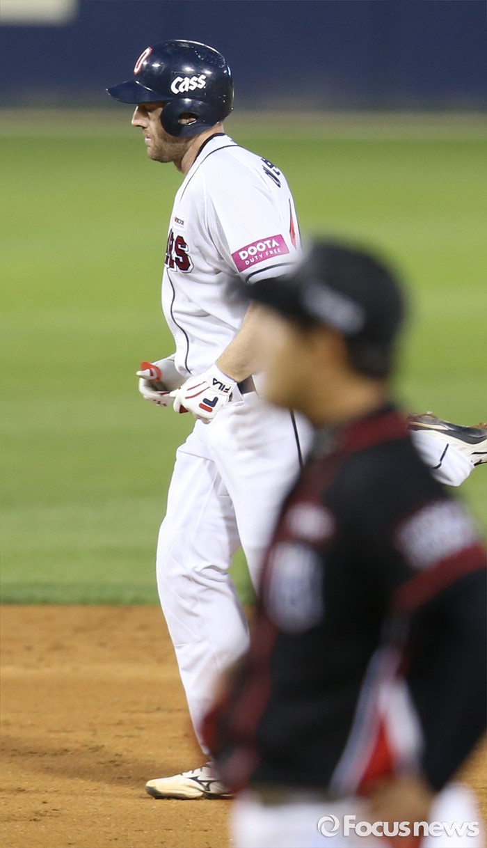 | △ 역전 홈런 친 두산 에반스 |