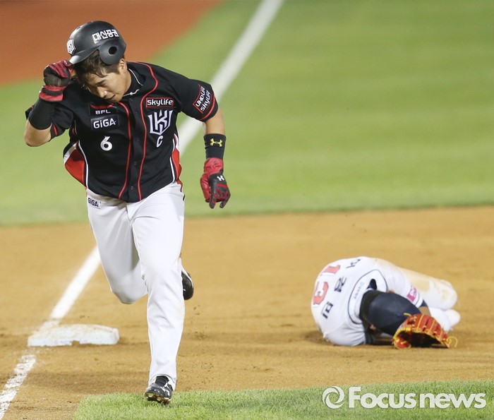 | △ 쓰러진 허경민, 달리는 박경수 |