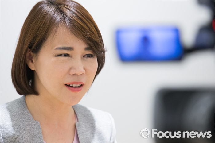△ 인터뷰하는 전현희 강남을 당선인