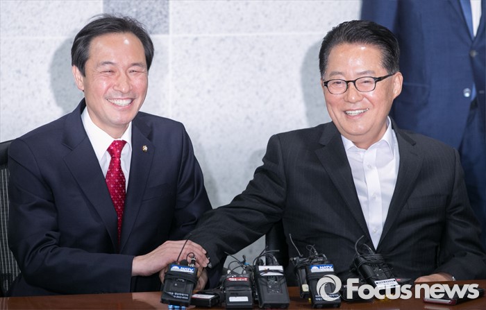 | △ 손 잡은 우상호-박지원 |
