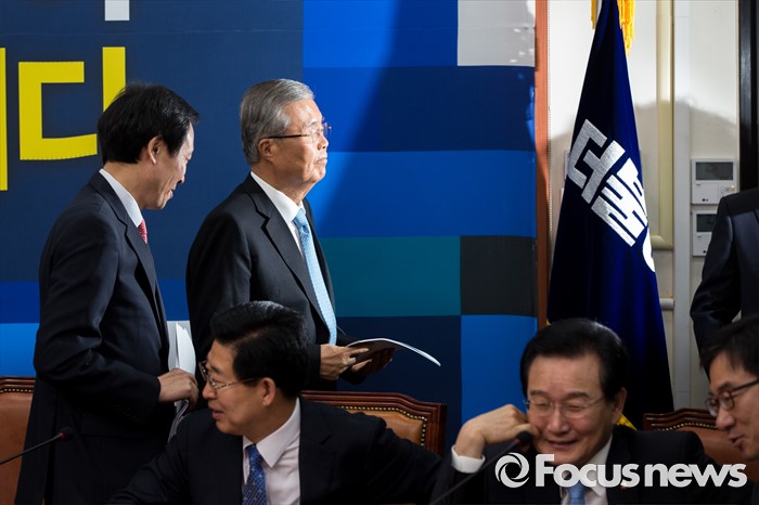 (서울=포커스뉴스) 김종인(왼쪽 두 번째) 더불어민주당 비상대책위 대표와 우상호 더불어민주당 원내대표가 25일 오전 서울 여의도 국회에서 열린 비상대책위원회의를 마친 뒤 회의실을 나서고 있다.