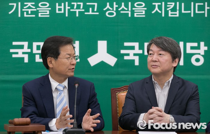 (서울=포커스뉴스) 25일 오전 서울 여의도 국회에서 열린 국민의당 최고위원회의에 참석한 안철수(오른쪽) 상임공동대표와 천정배 공동대표가 대화하고 있다.