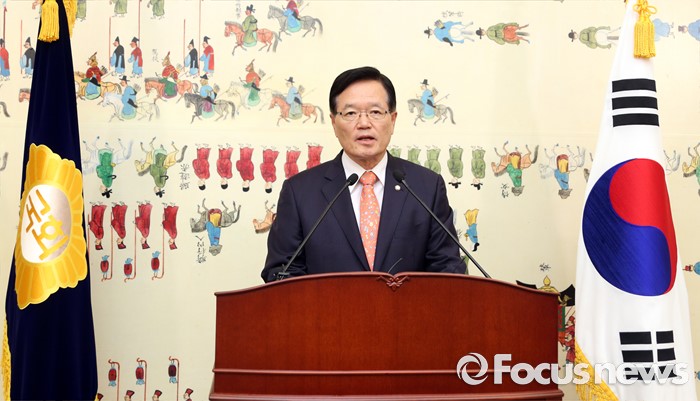 (서울=포커스뉴스) 정의화 국회의장이 25일 오전 서울 여의도 국회에서 퇴임 기자회견을 하고 있다. 오는 29일 임기 종료를 앞둔 정 의장은 이날 회견에서 19대 국회 후반기 국회의장직을 수행하며 느낀 소감 등을 전했다.