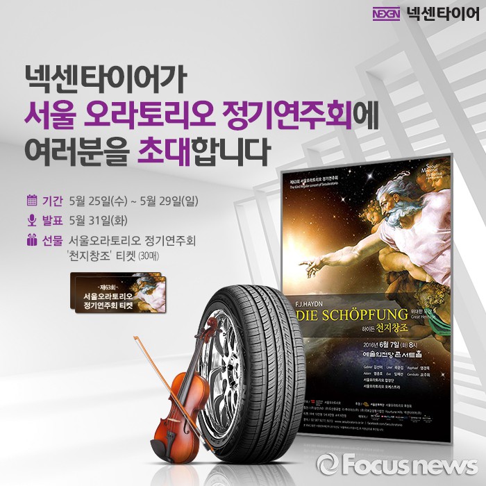 넥센타이어는 공식 페이스북 페이지를 통해 이번 정기연주회 후원 활동에 대한 콘텐츠를 공유할 예정이며, 25일부터 29일까지 이벤트를 진행하고 추첨을 통해 티켓을 증정할 예정이다.