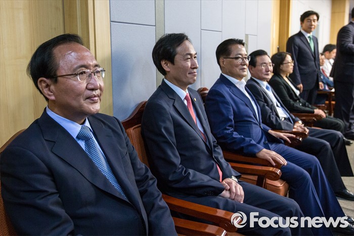 | △ 한자리에 모인 야3당 원내대표 |