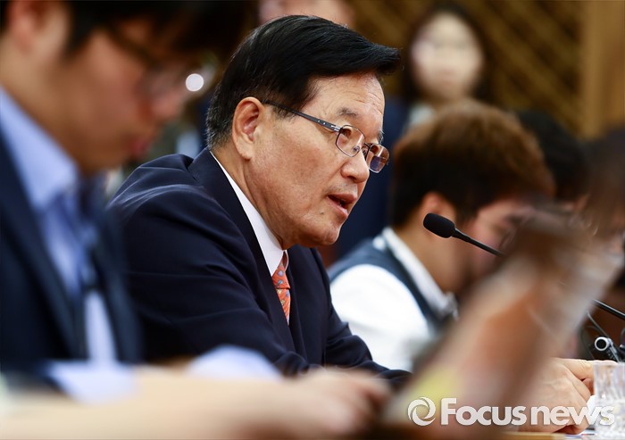 (서울=포커스뉴스) 정의화 국회의장이 25일 오전 서울 여의도 국회에서 퇴임 기자회견을 마친 뒤 취재진과 기자간담회를 하고 있다. 오는 29일 임기 종료를 앞둔 정 의장은 이날 회견에서 19대 국회 후반기 국회의장직을 수행하며 느낀 소감 등을 전했다.