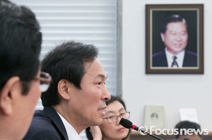 | △ 우상호 발언 뒤 보이는 DJ 사진 |