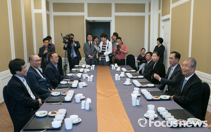 (서울=포커스뉴스) 김종인 더불어민주당 비대위 대표가 25일 오후 서울 여의도 국회 귀빈식당에서 지구촌사랑나눔 봉사단체와 오찬 간담회를 하고 있다.