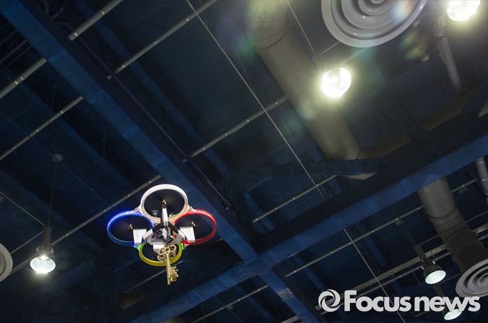 (서울=포커스뉴스) 25일 오전 서울 강남구 코엑스에서 열린 국토교통부 주최'2016 국토교통대전' 개막식중 드론이 관련 관련 퍼포먼스를 위한 열쇠를 운반하고 있다.