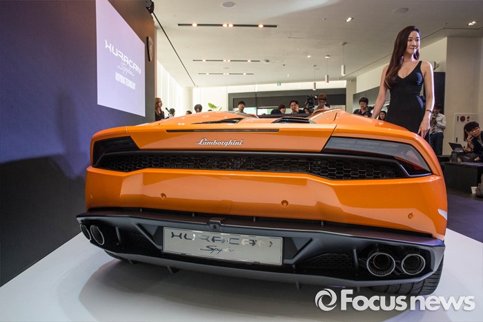 (서울=포커스뉴스) 25일 오전 서울 강남구 람보르기니 서울에서 열린 람보르기니 우라칸 LP 610-4 스파이더 출시 행사에서 업체 관계자들이 차량을 선보이고 있다.