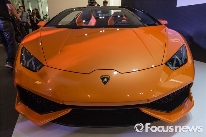 (서울=포커스뉴스) 25일 오전 서울 강남구 람보르기니 서울에서 열린 람보르기니 우라칸 LP 610-4 스파이더 출시 행사에서 업체 관계자들이 차량을 선보이고 있다.