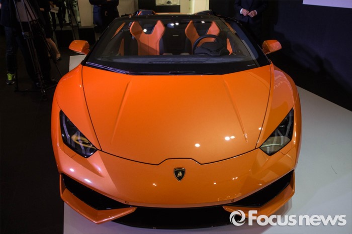 (서울=포커스뉴스) 25일 오전 서울 강남구 람보르기니 서울에서 열린 람보르기니 우라칸 LP 610-4 스파이더 출시 행사에서 업체 관계자들이 차량을 선보이고 있다.
