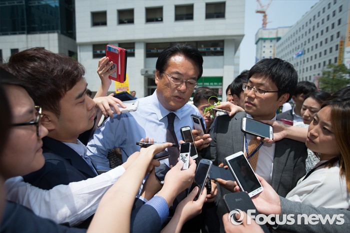 (서울=포커스뉴스) 정진석 새누리당 원내대표가 25일 오후 서울 여의도 새누리당 당사에서 당사 경비 및 의경 격려를 마친 후 취재진들의 질문을 받고 있다.